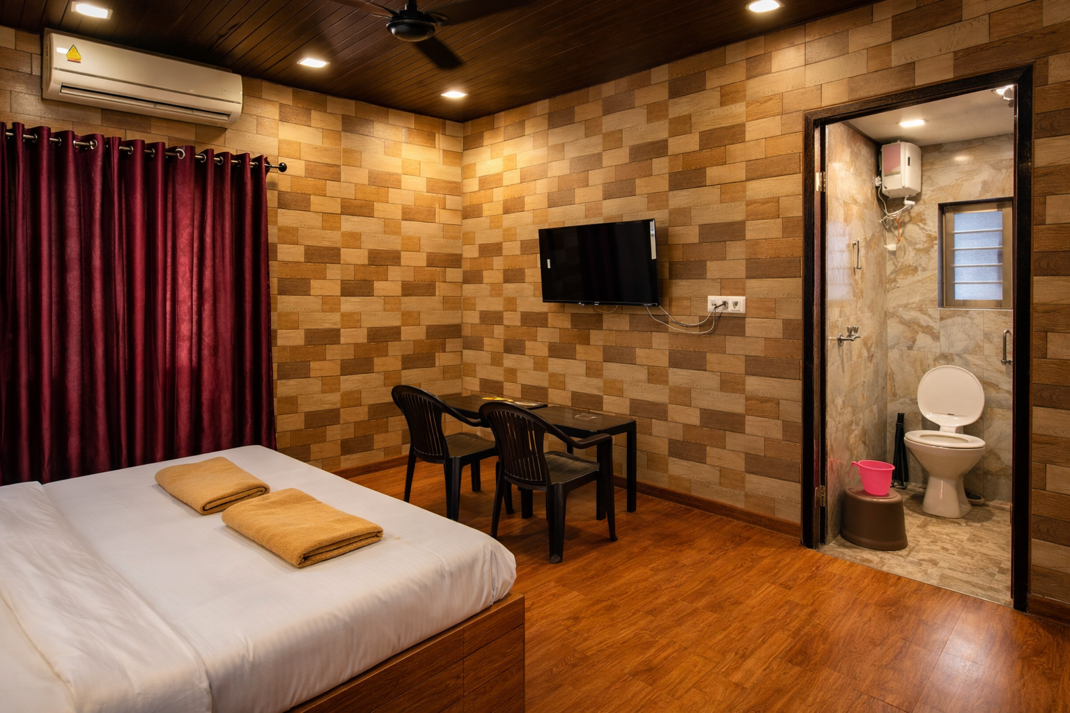 “Comfortable AC rooms at Tulsi Beach Resort offering cool, relaxing stay with modern amenities, perfect for families, couples, and groups.” 🛏️❄️