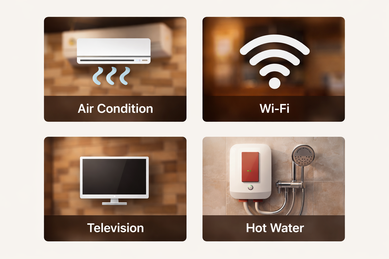 “Enjoy modern amenities at Tulsi Beach Resort including high-speed WiFi, television, air-conditioned rooms, and hot water for your comfort.”