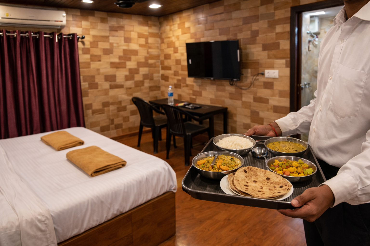 “Enjoy convenient room service at Tulsi Beach Resort with fresh, delicious meals delivered directly to your room for a comfortable stay.” 🍽️